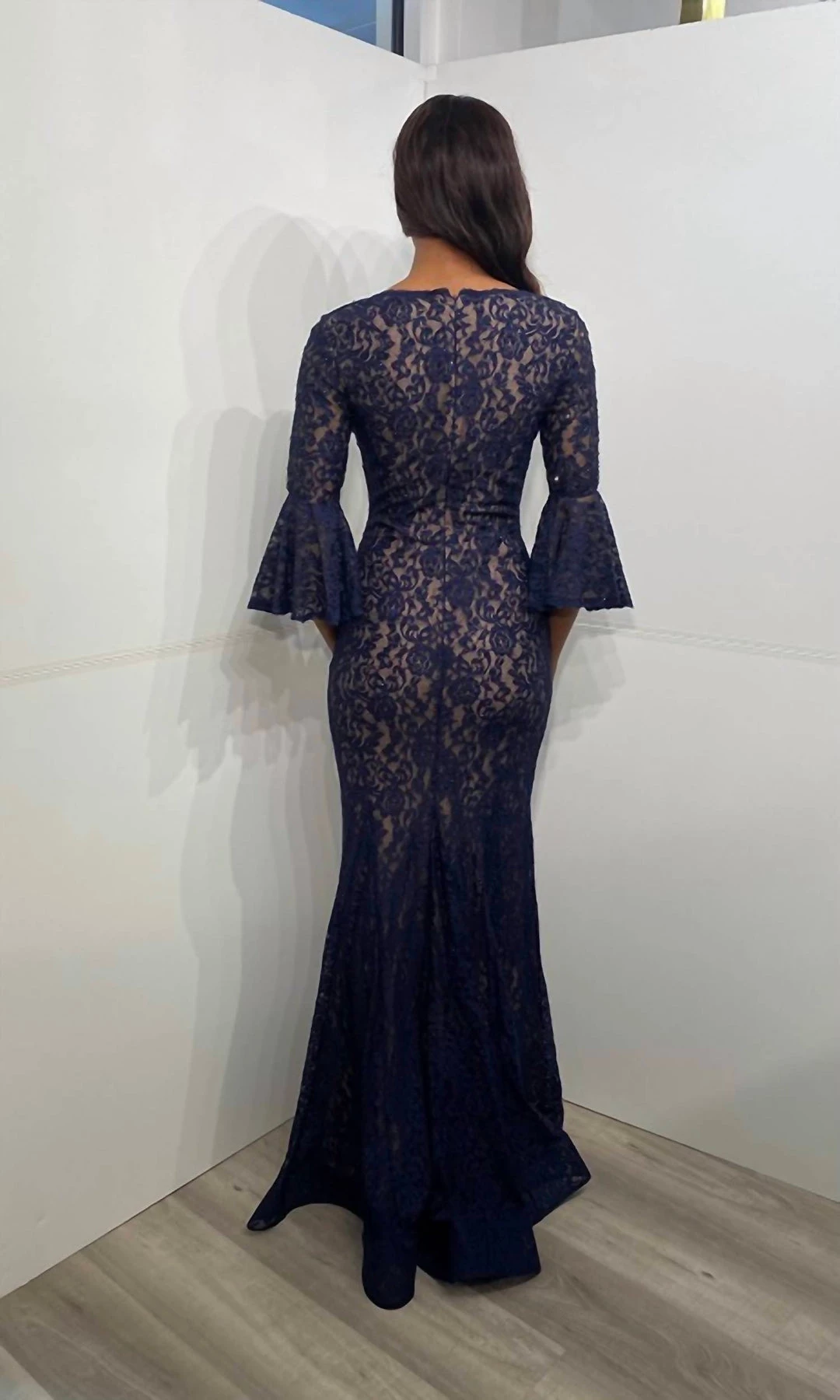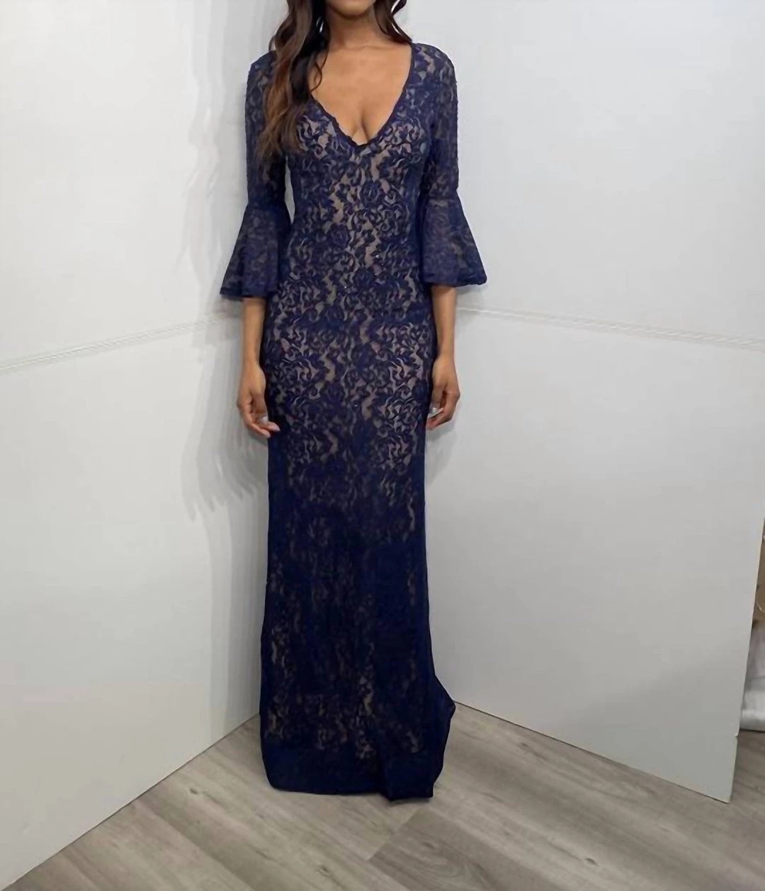 Budget 😍 Jovani 06836 Stretch Lace Evening 👗 Dress in Navy/Nude – 👩 women 🤩