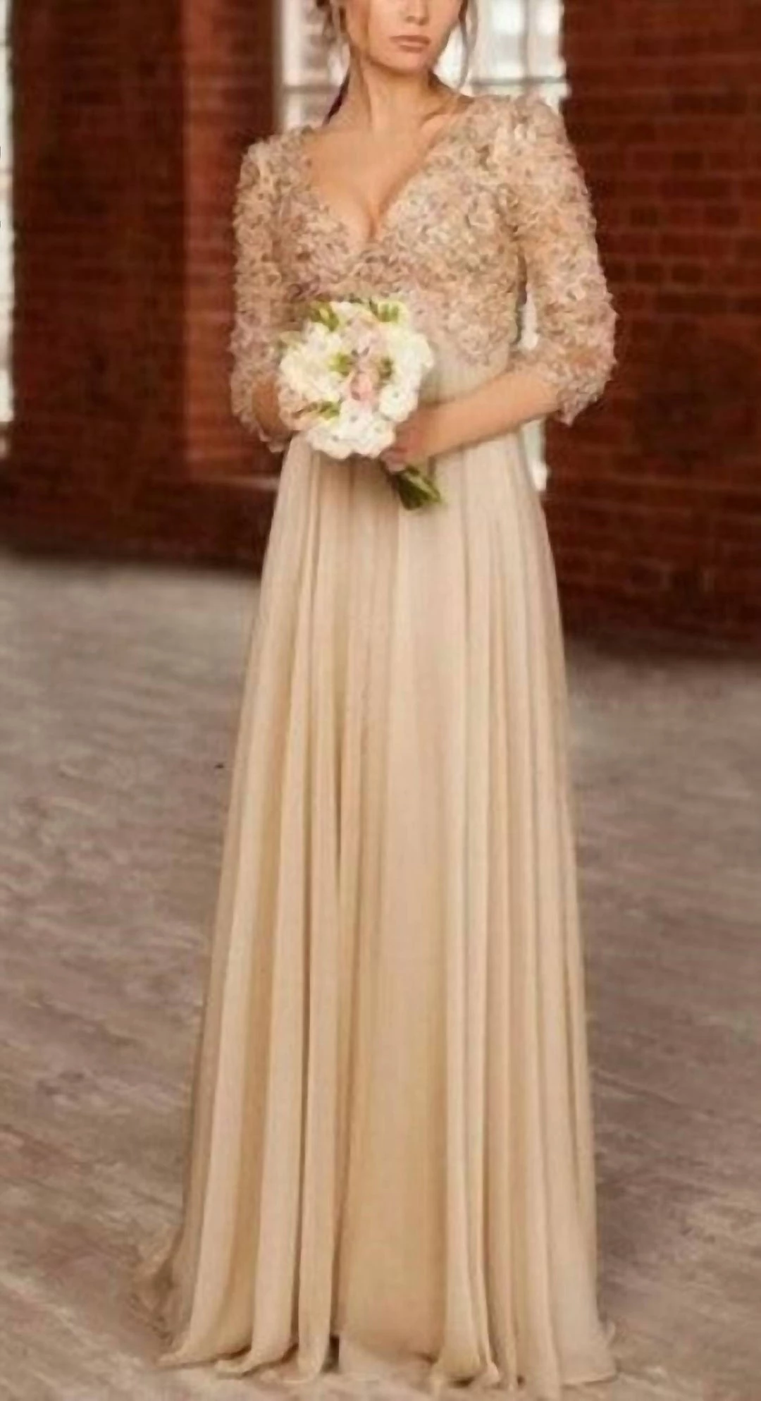 Hot Sale โค๏ธ Jovani Long Sleeve Chiffon ๐ Dress in Gold – ๐ฉ women ๐งจ