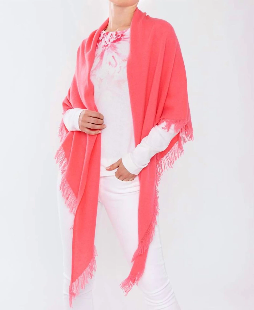 Deals 👍 Kinross Cashmere Fringe Triangle Wrap in Flamingo – 👩 women 😍