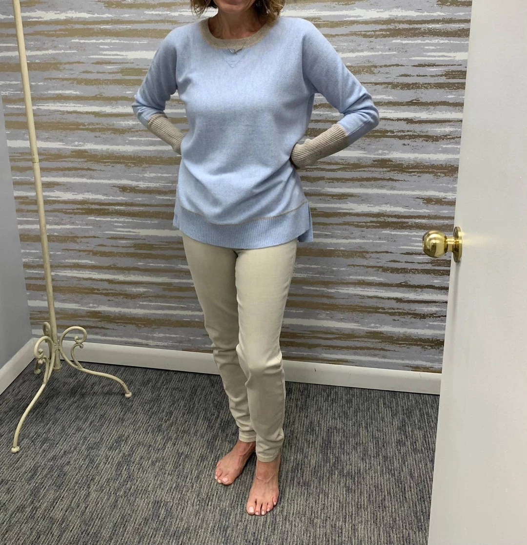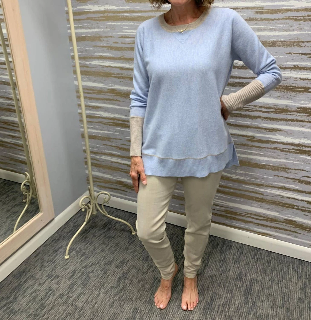 This light weight sweater features oatmeal coloured ribbed details on the collar and wristsRelaxed fit2ply / 12ggHand wash