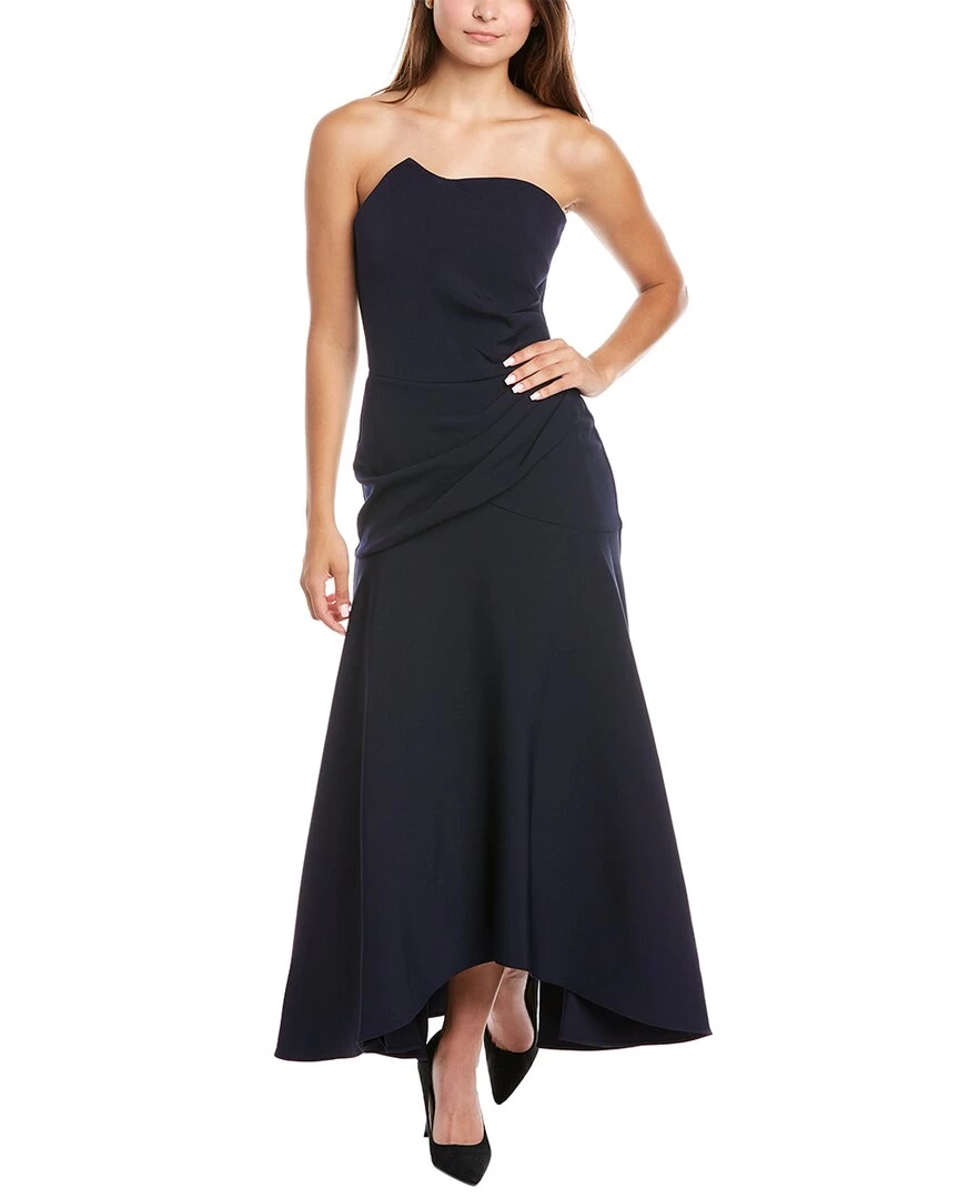 - Downing Midi Dress In Navy Midnight With Draped Detailing And High-Low Hem